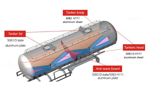 5083 H111 aluminum plate is normally used as tank body and wave shields, 5083 O aluminum plate sheet is softer than H111, used for tank lid which needs bending, and the bulkhead of the tank truck also use 5083 O aluminum sheet.